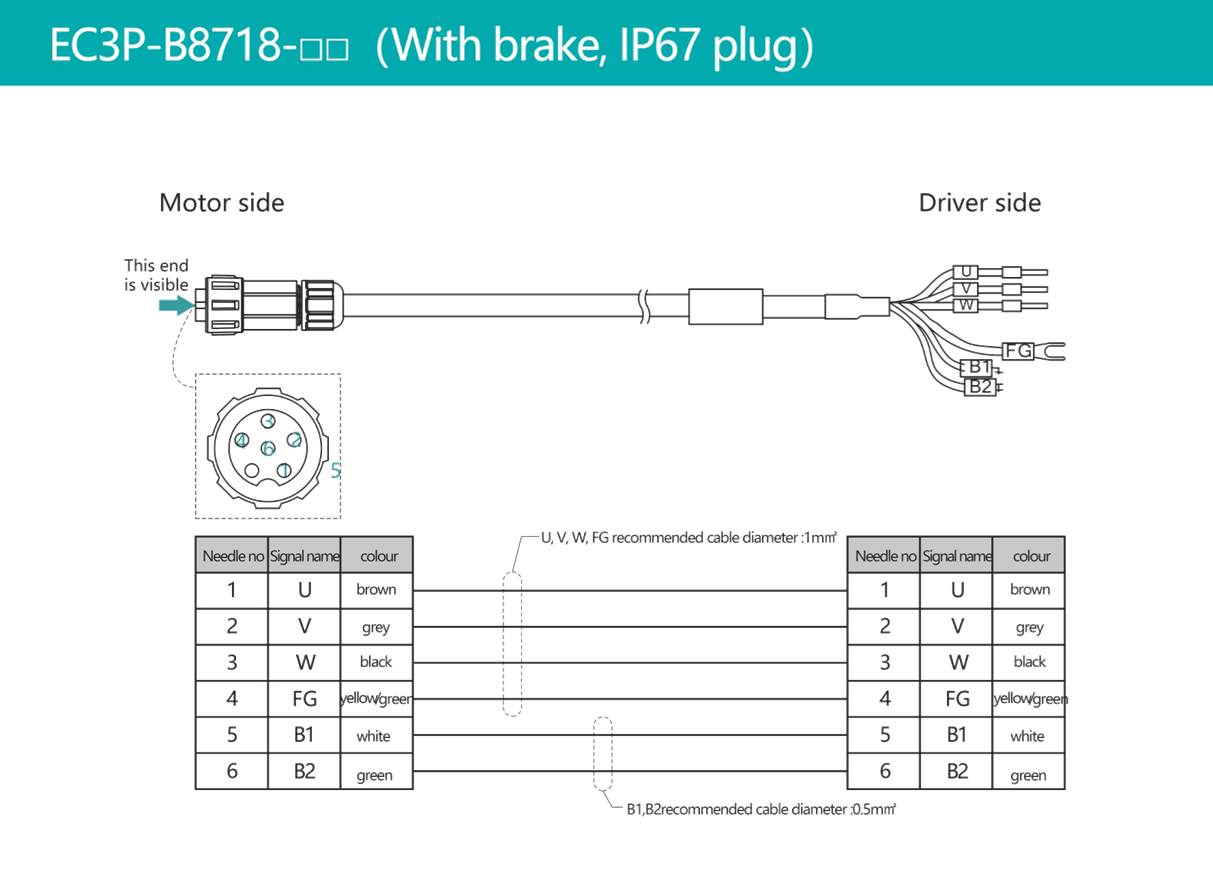 - Power Cable with Brake for EM3A power size of 750W to 1kw.