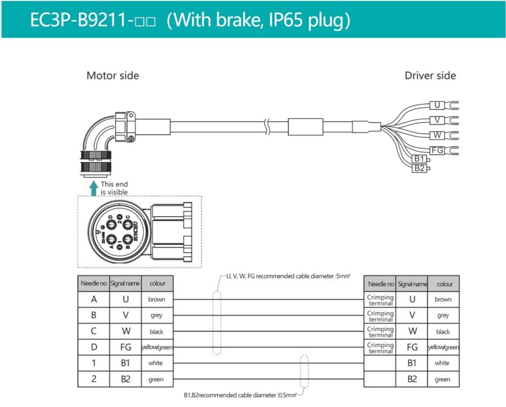 - Power Cable with Brake for EM3G power size of 7.5kw