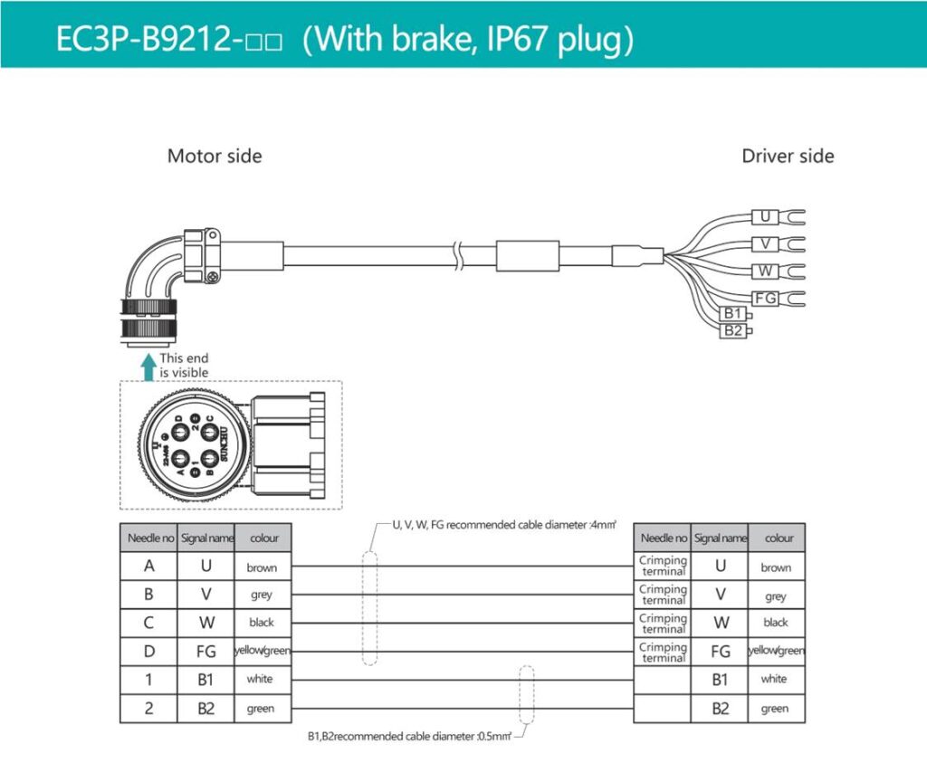 - Power Cable with Brake for EM3G power size of 4.4kw~5.5Kw.