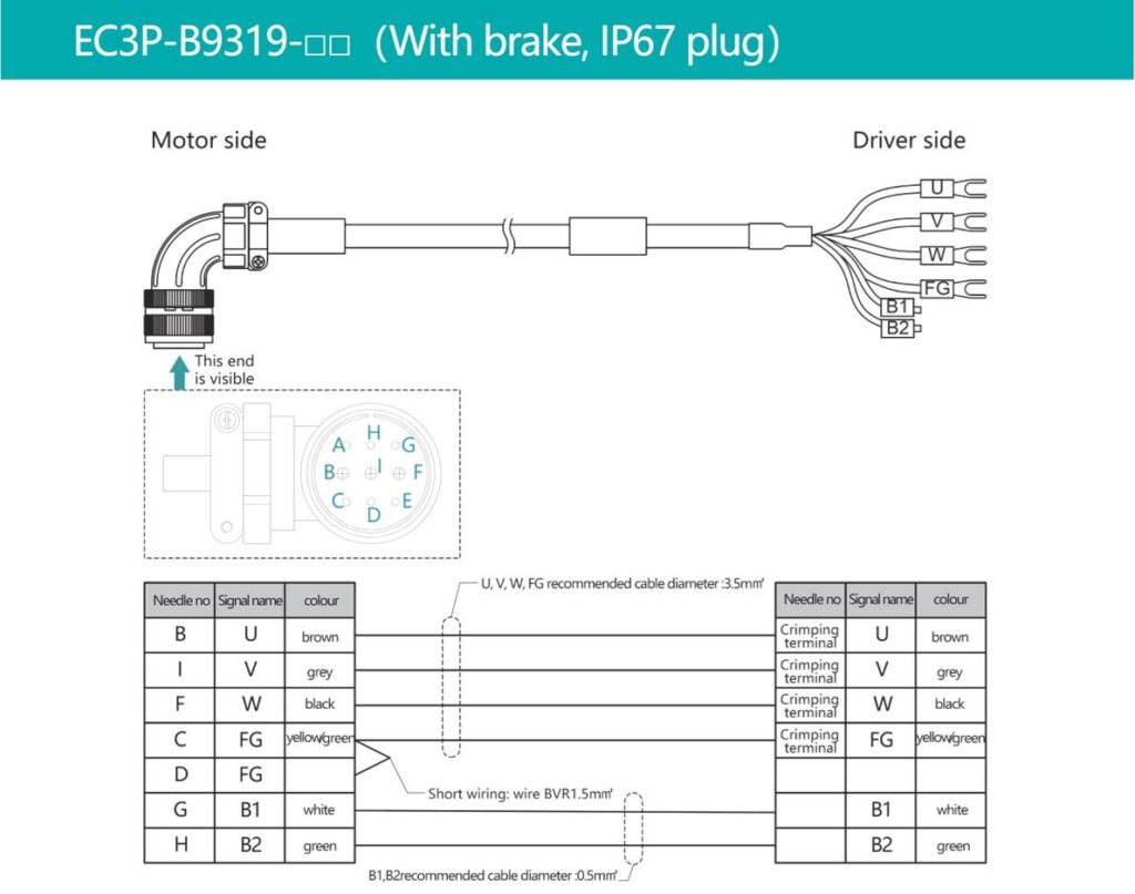 - Power Cable without Brake for EM3A power size of 4.0kw~5.0Kw.