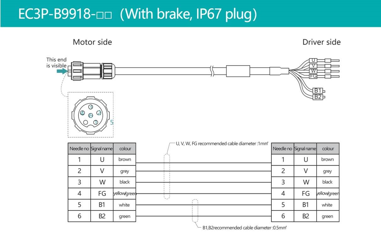 - Power Cable with Brake for EM3A power size of 400W and below.