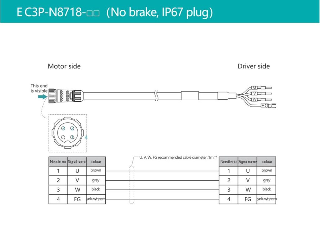 - Power Cable without Brake for EM3A power size of 750W to 1kw.