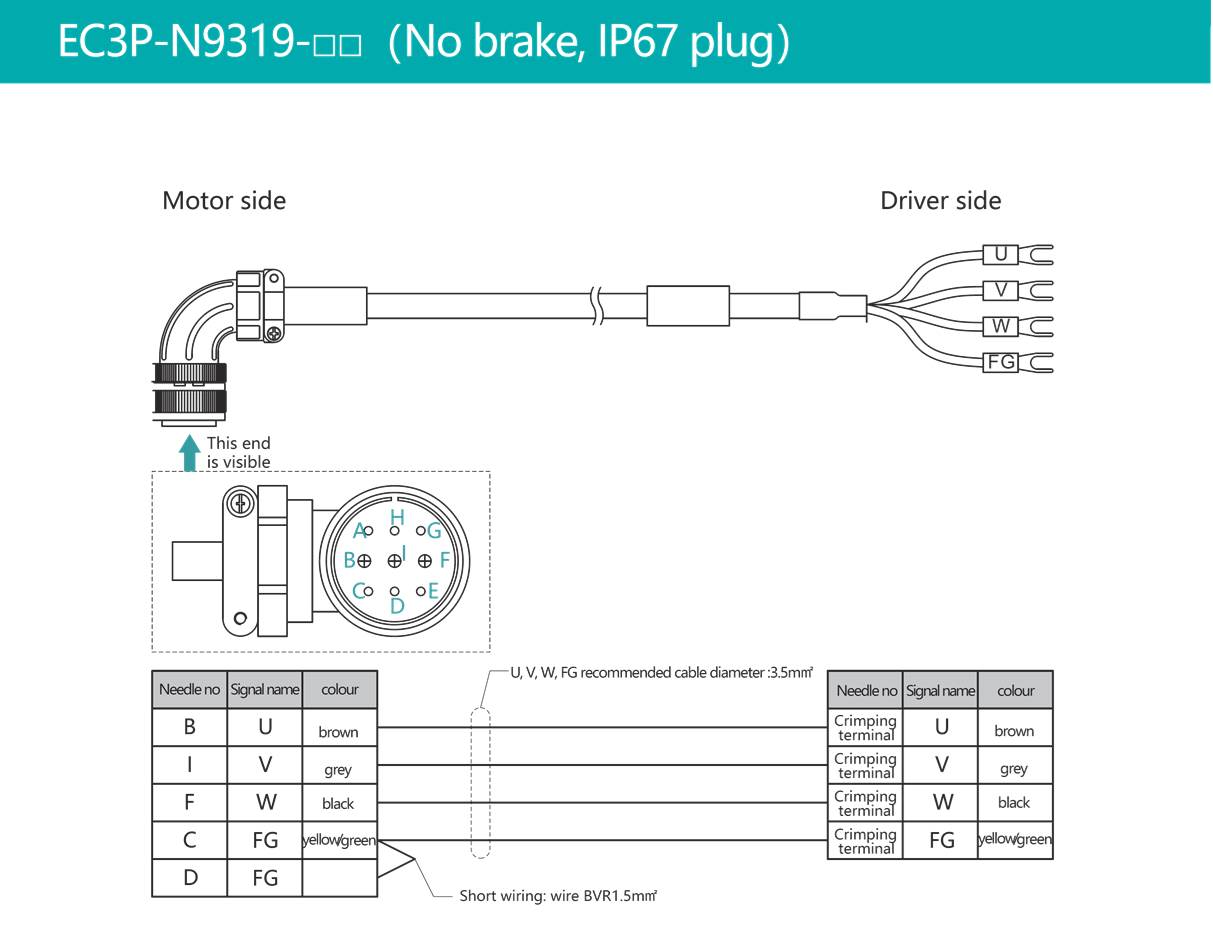 - Power Cable without Brake for EM3A power size of 4.0kw~5.0Kw .