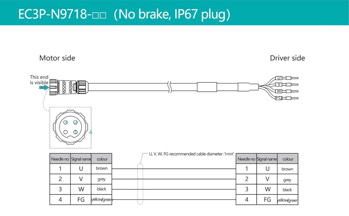 - Power Cable without Brake for EM3A power size of 400W and below.
