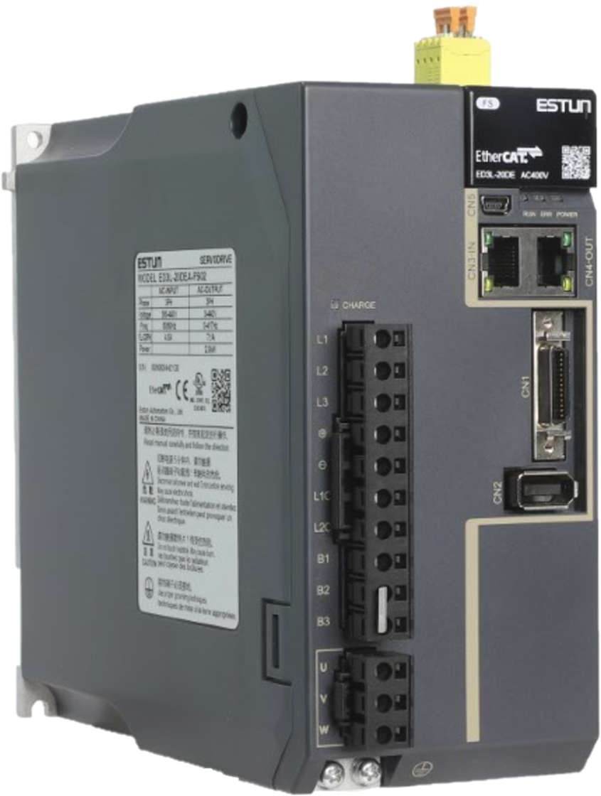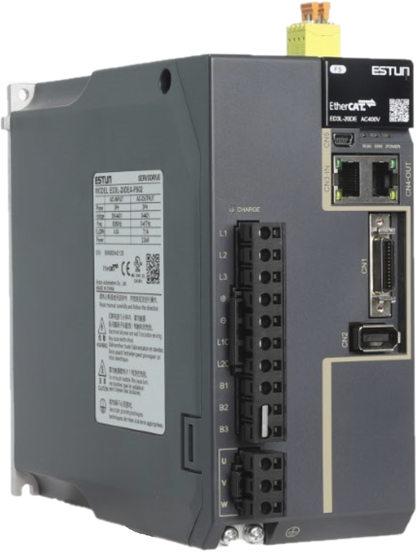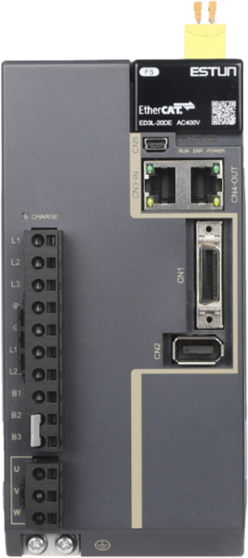 ED3L-30DEA-FS02-UL is a 3.0KW EtherCAT servo drive with Built-in STO terminal for Safety, suitable for applications with PLC or EtherCAT-based motion controllers commanding the axis through EtherCAT network.