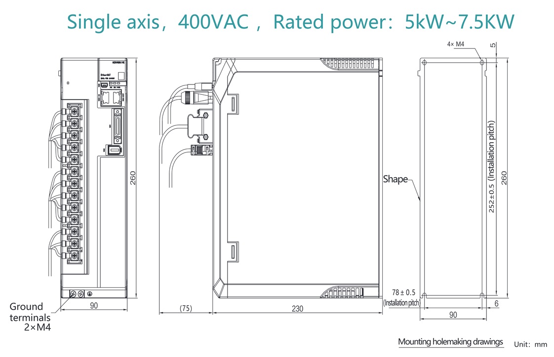 • Servo drives with a power rating of 5.0KW.