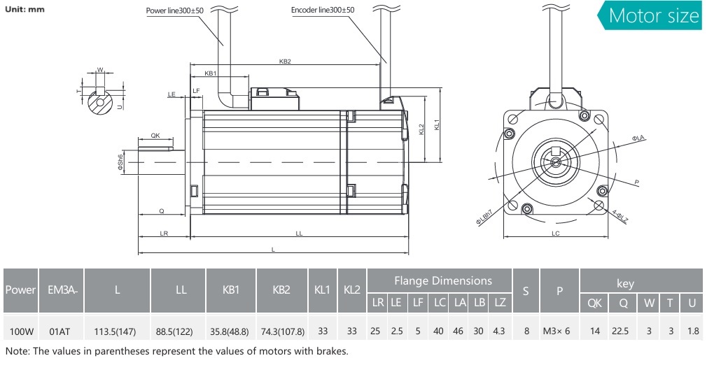 - Servo motor with a power rating of 100W to pair only with Estun Drive.