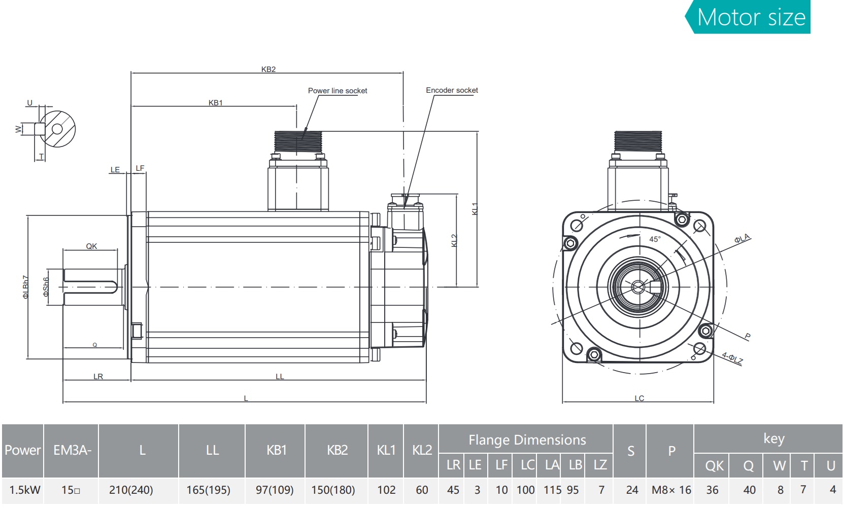 - Servo motor with a power rating of 5kW to pair only with Estun Drive.