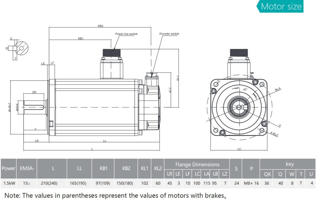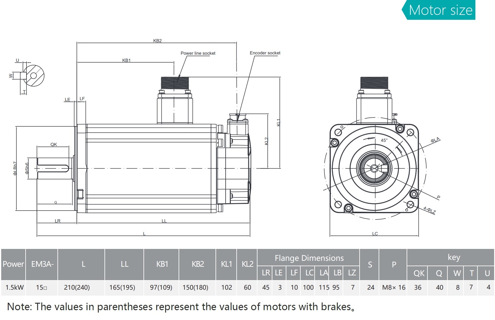 - Servo motor with a power rating of 1.5KW to pair only with Estun Drive.